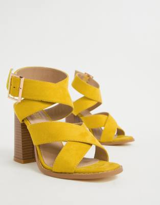 Wink yellow square toe block heeled yellow sandals asos