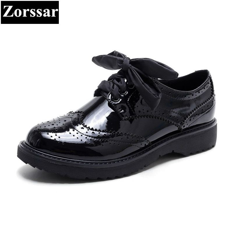 New Women Casual Brogue Shoes Black Red black patent leather brogues womens