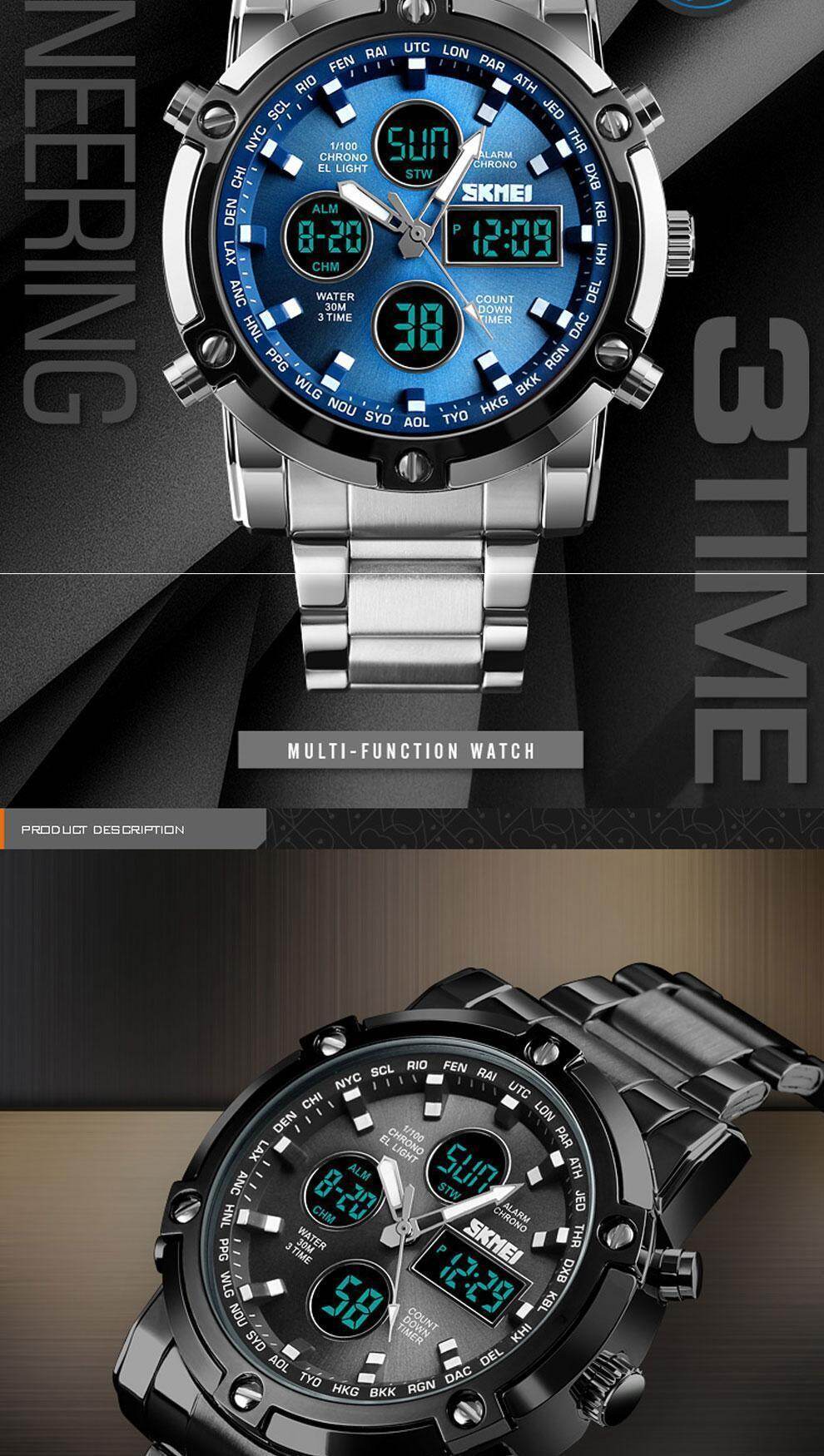 men stainless steel digital watch-1389 skmei watch 1389