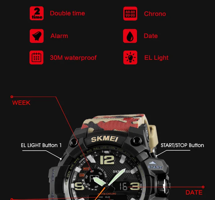 Skmei 1155 50m waterproof men sport skmei 1155 instructions