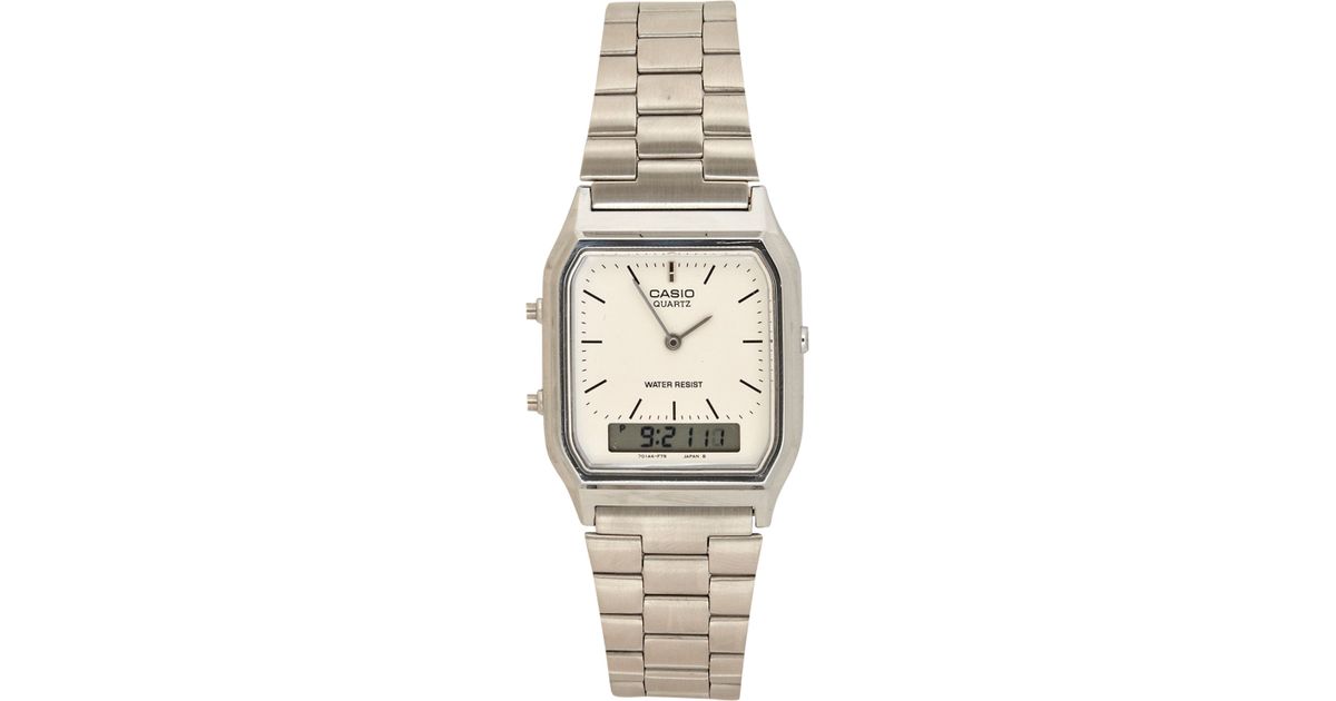 River Island Grey Metal Casio Square casio square analogue watch