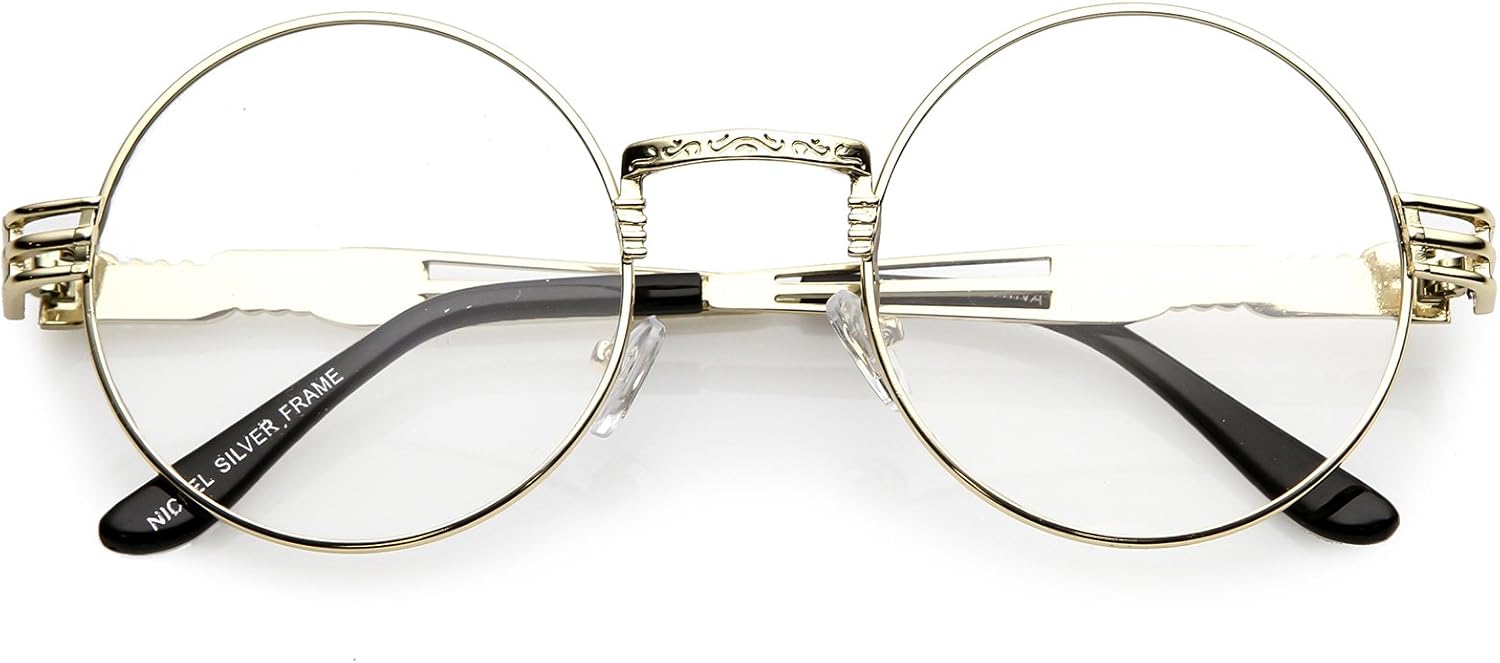 Classic Engraved Metal Arm Cutout Clear eyeglasses for flat nose