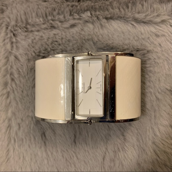 Womens Large White Fabric Bangle Watch burberry bangle watch