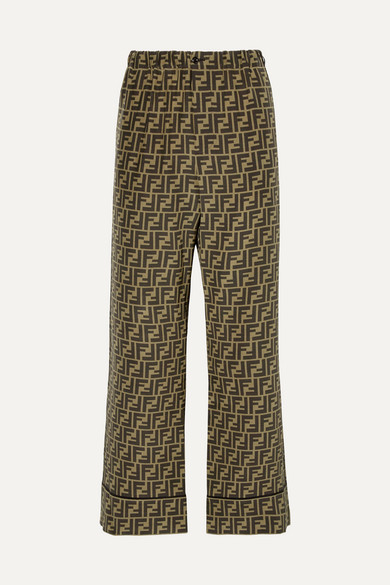Brown Cropped printed silk crepe de fendi wide leg pants