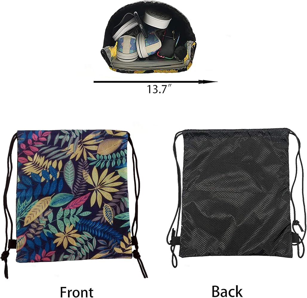 Blue Leaf Drawstring Backpack Cinch Bag polyester string bag