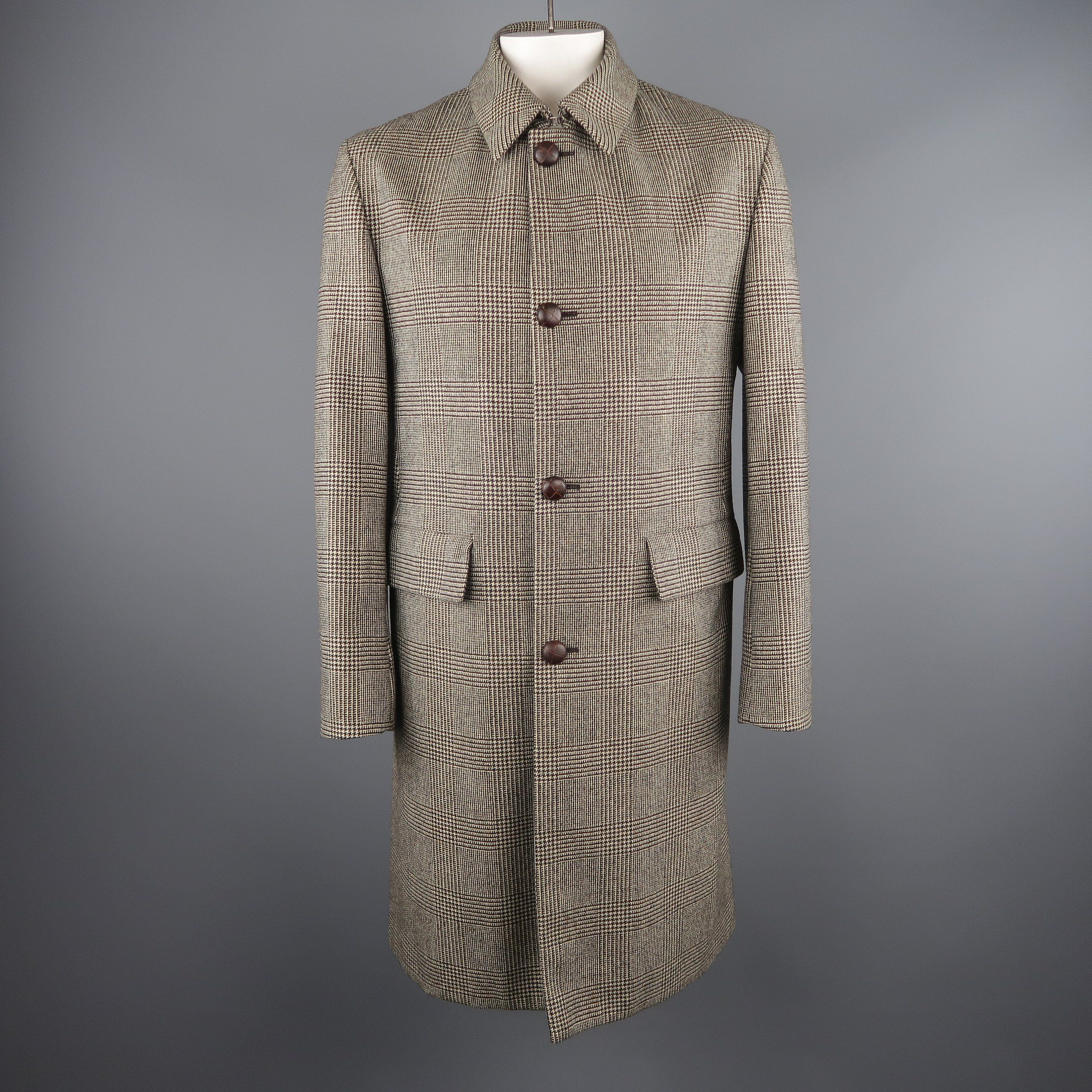 Beige Plaid Wool Storm System brioni coat