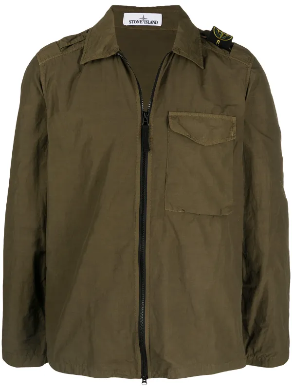logo-patch zip-up Military Jacket khaki green stone island jumper