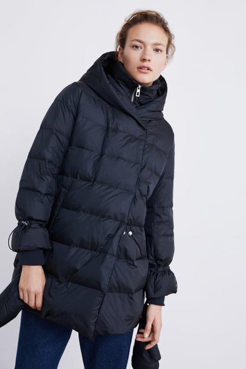 Zara | Puffer coat, Quilted coat down puffer coat with wraparound collar