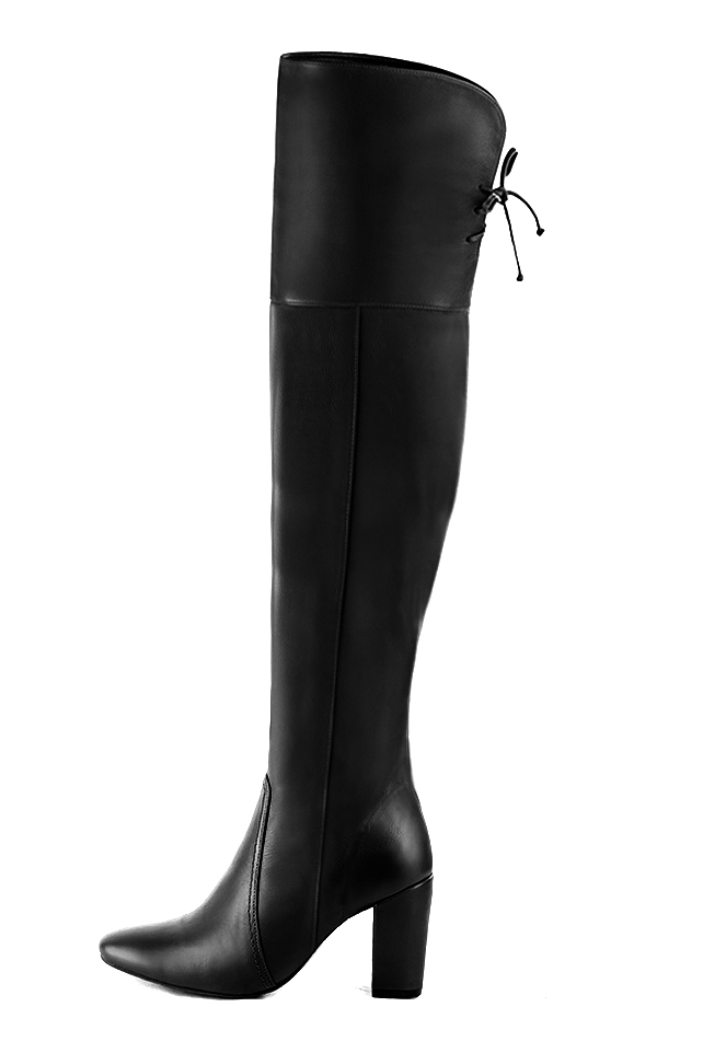 Cuissardes femme en cuir sur mesures noir satiné | Mollets fins ou larges | Bout rond. Talon cuissarde bout rond