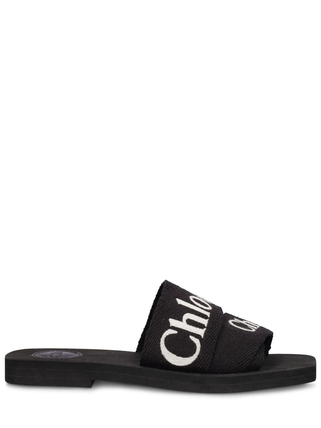Sandales plates en cuir et toile à logo 10 mm Chloé en coloris Noir | Lyst sandales chloé