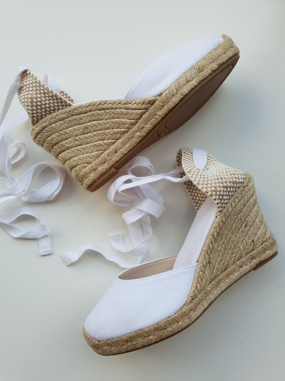 Espadrilles plates compensées 9cm MARIÃE BOUT BLANC fabriquées en Espagne naturelles espadrilles compensées mariée