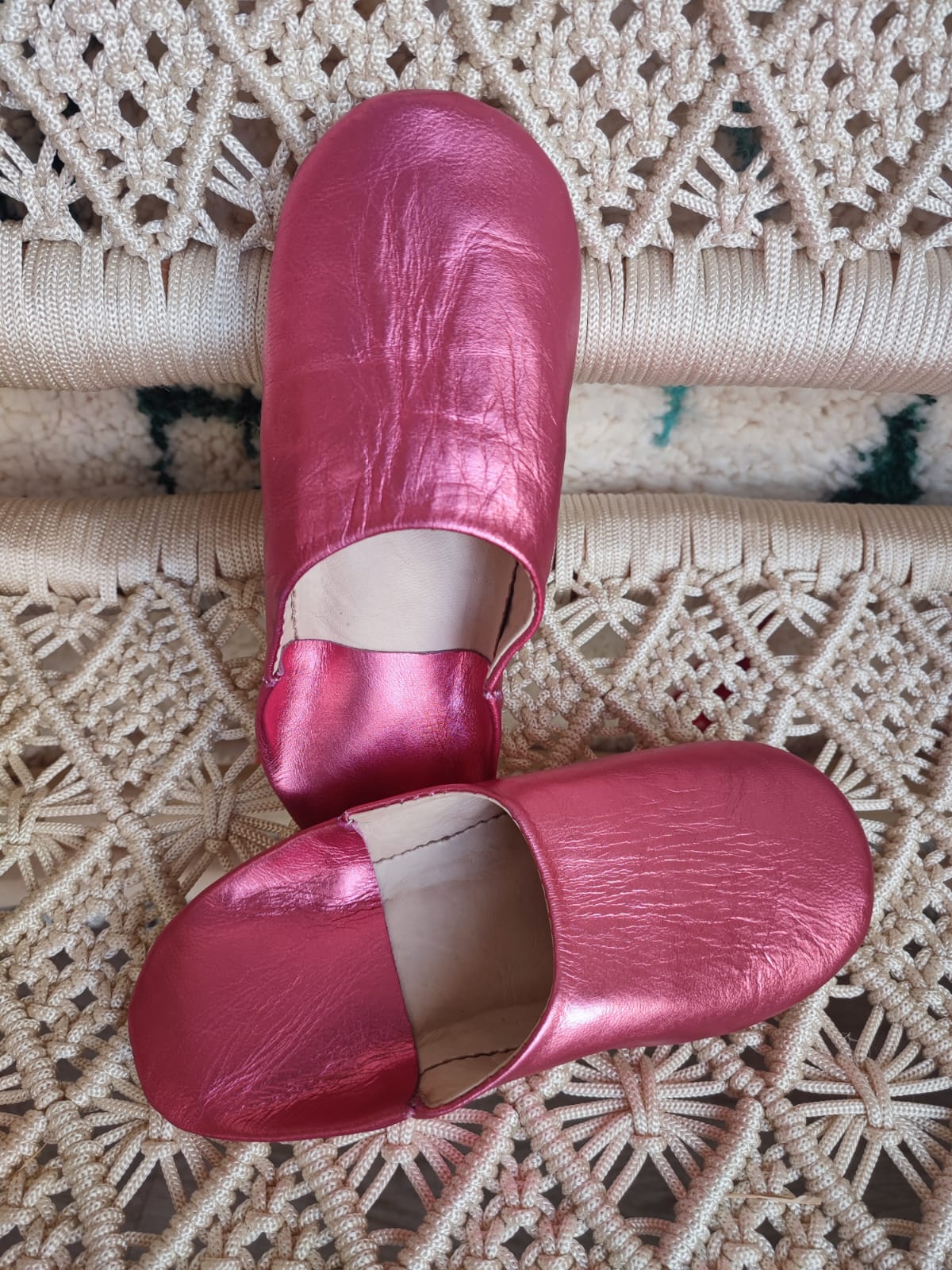 Babouches Beldi - chaussons en cuir Rose - Sook Bohème bibalou chaussons cuir souple