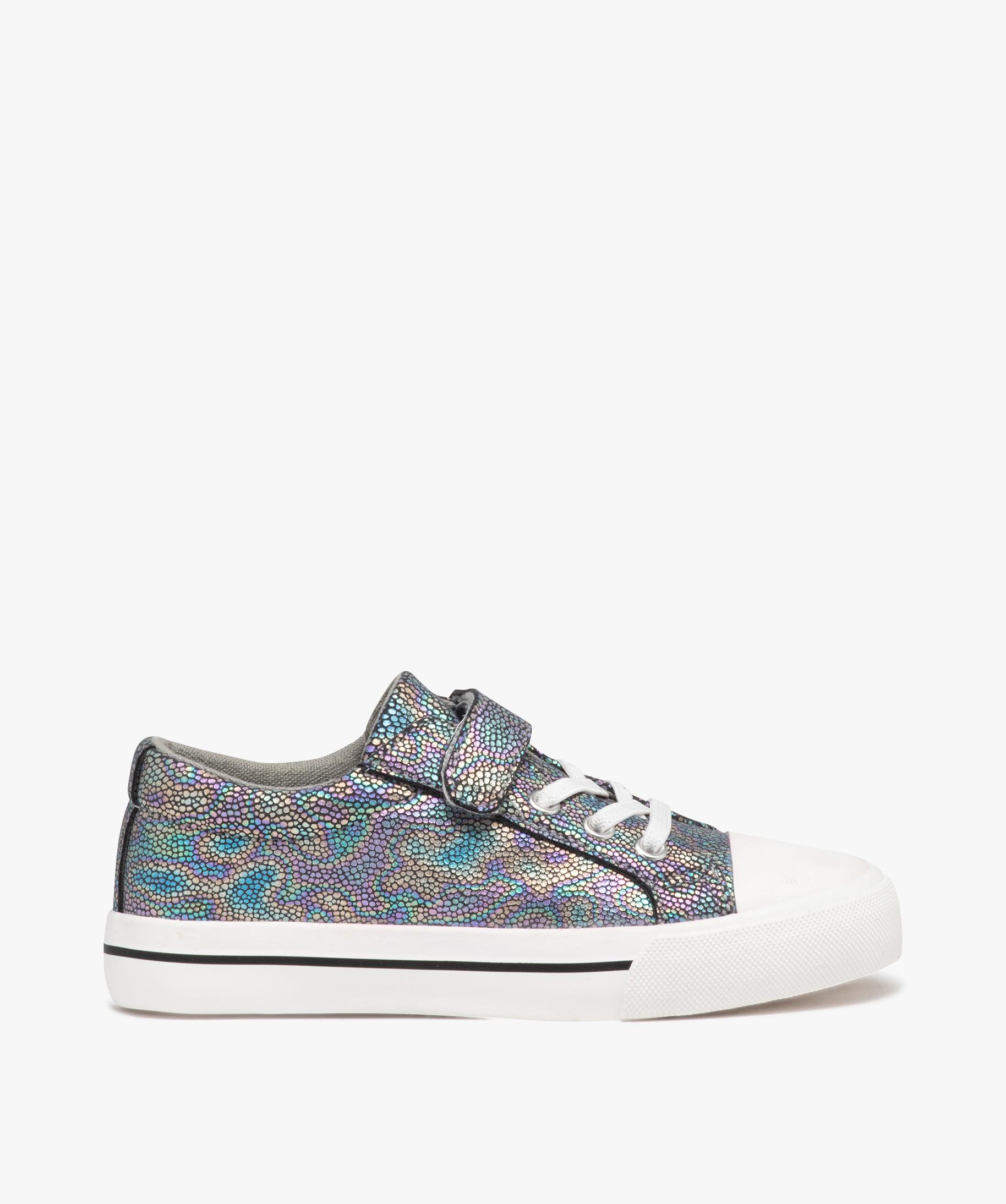 Baskets fille en toile irisée à scratch et à lacets élas multicolore | GEMO basket toile fille