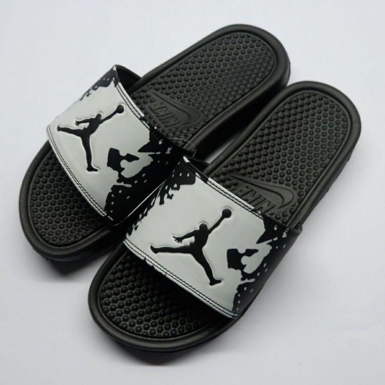 Nike Benassi Air Jordan Logo Hitam, Fesyen Pria, Sepatu , Sandal di Carousell