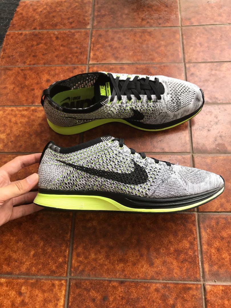 Nike Flyknit Racer Oreo Volt, Fesyen Pria, Sepatu , Sneakers di Carousell nike flyknit racer oreo volt