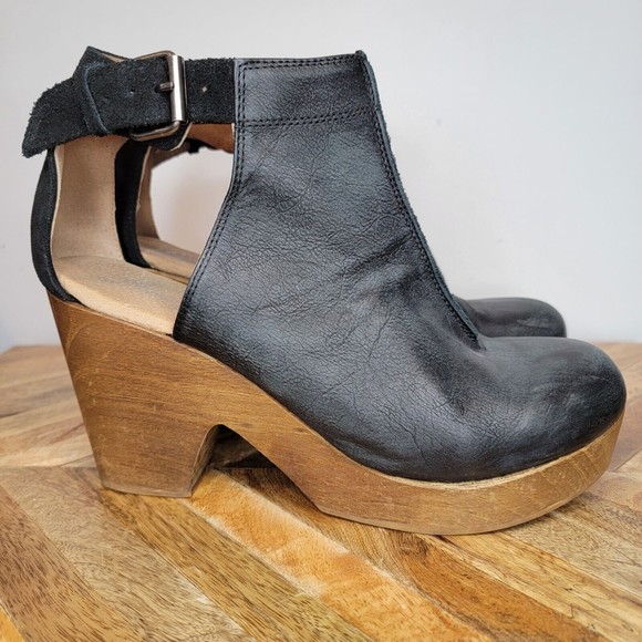 Free People | Shoes | Free People Amber Orchard Boot Clog Black Leather Ankle Buckle Cut Out 95 free people amber orchard clog
