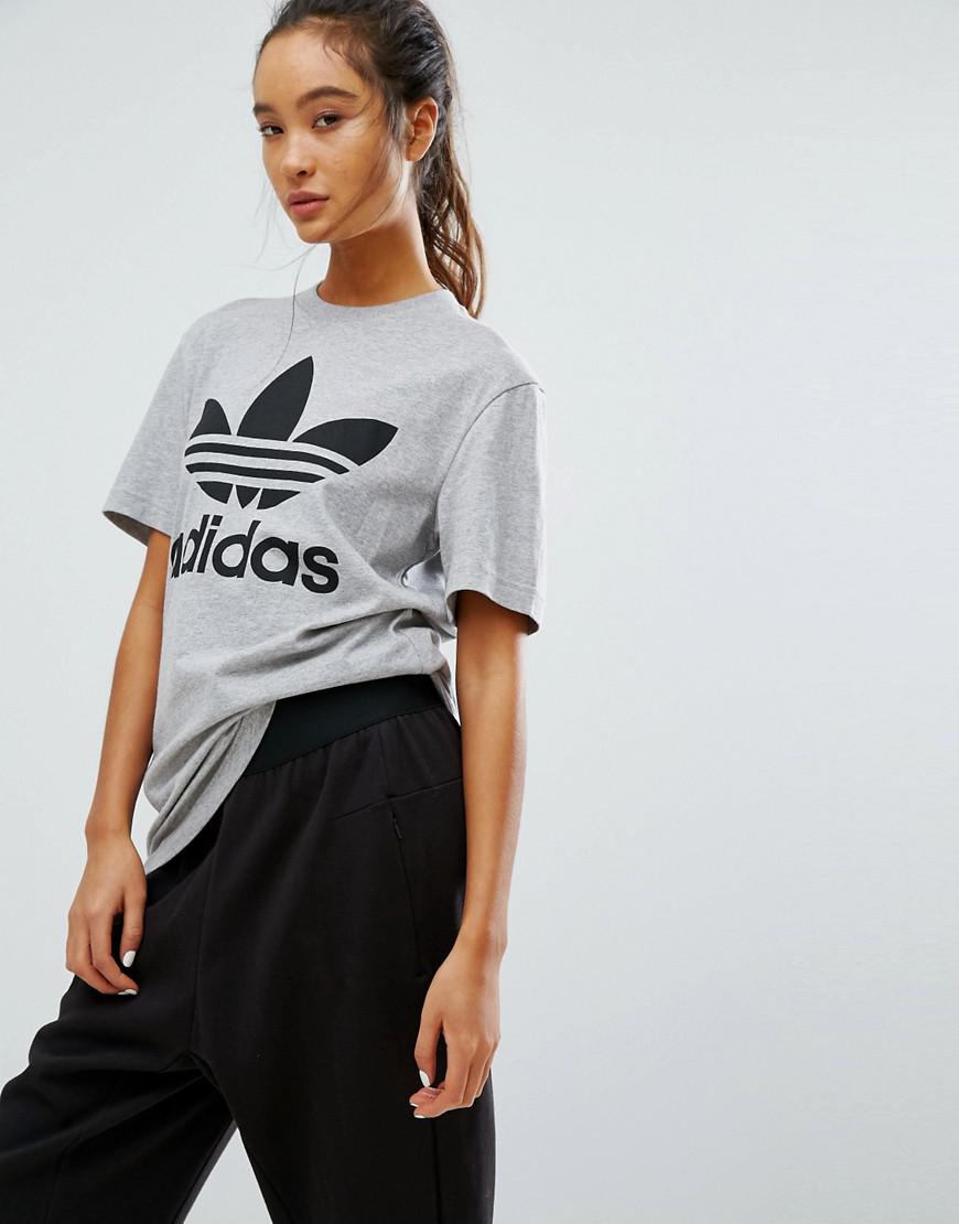 adidas Originals Cotton Originals Gray Trefoil Boyfriend T-shirt adidas boyfriend