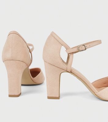 Wide Fit Nude Suedette 2 Part Block nude wide fit block heels