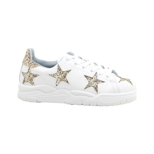 Women's Chiara Ferragni Gold Star Lace white sneakers with gold stars