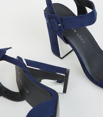 Wide Fit Navy Suedette Metal Heel navy wide fit sandals