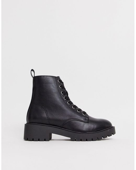 New Look Lace Up Flat Boot - Black new look lace up flat boot