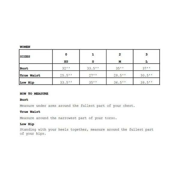 Women's size conversion chart. US sizes