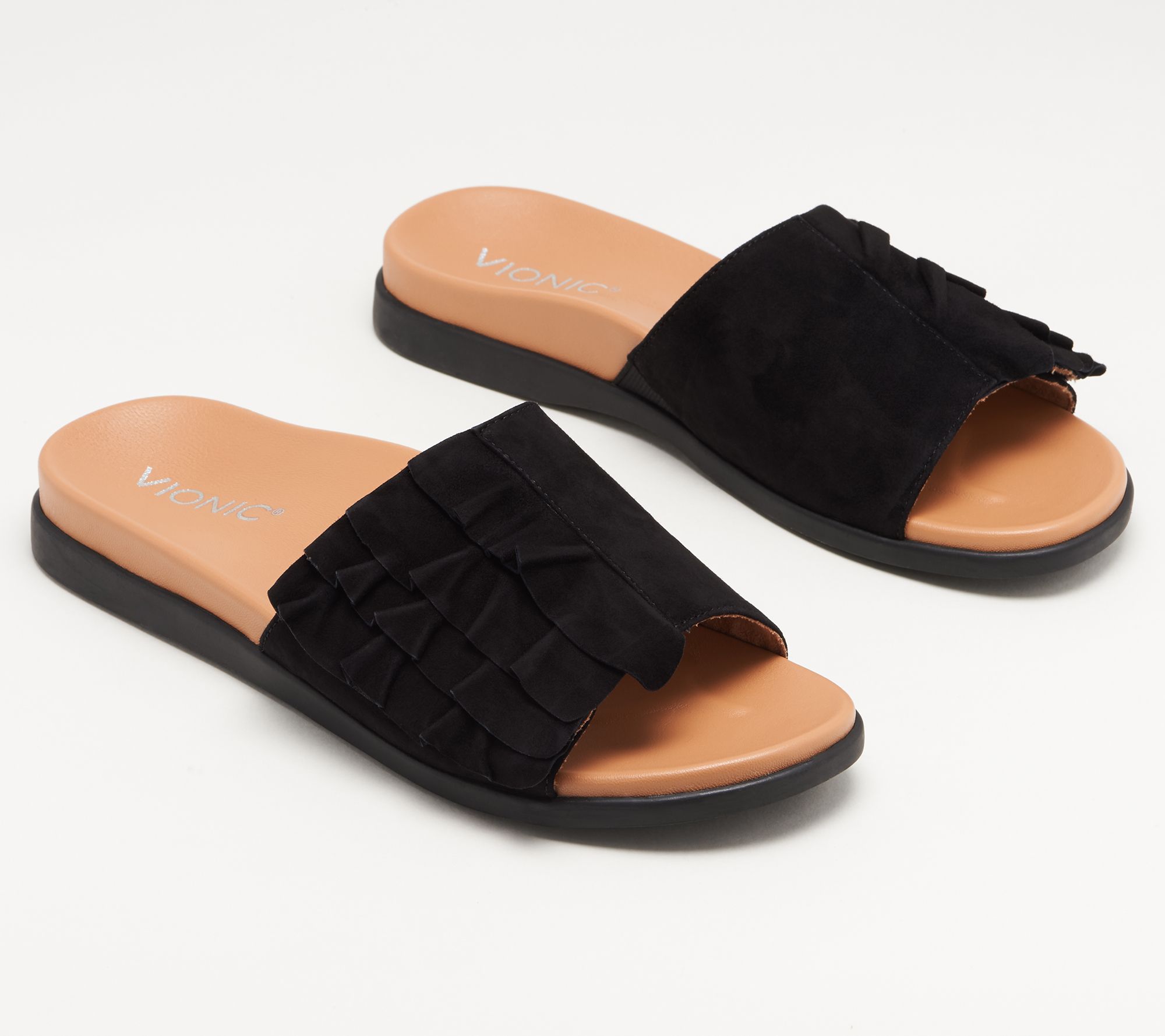 Vionic Suede Ruffle Slide Sandals vionic roni