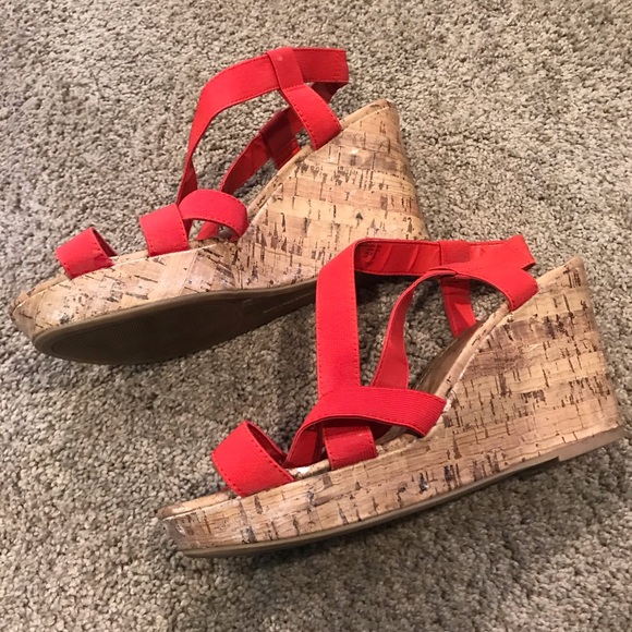 Red Canvas Cork Strappy Wedges Sz 10 wide width red wedges