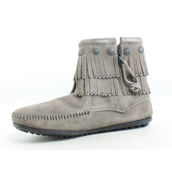 Hi Top Back Zip Dbl Frnge Grey white moccasin boots