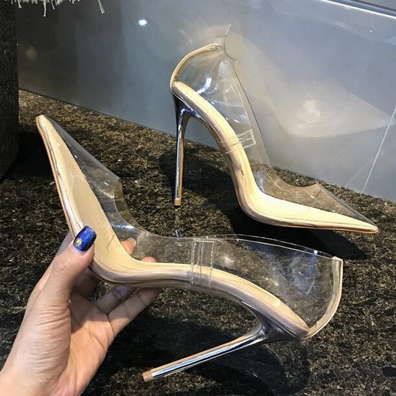 Black Clear Pointy Toe High Heels clear pointy shoes