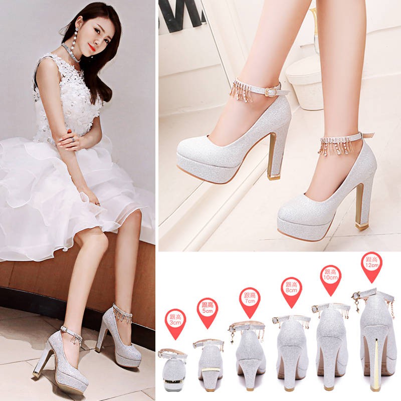wedding shoes for bride thick heel in