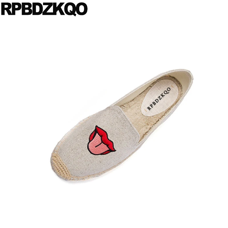 retro canvas shoes flats women flamingo espadrilles