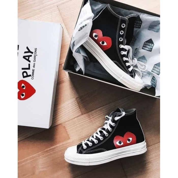 SEPATU CONVERSE CDG HIGH BLACK WHITE dover street market converse cdg