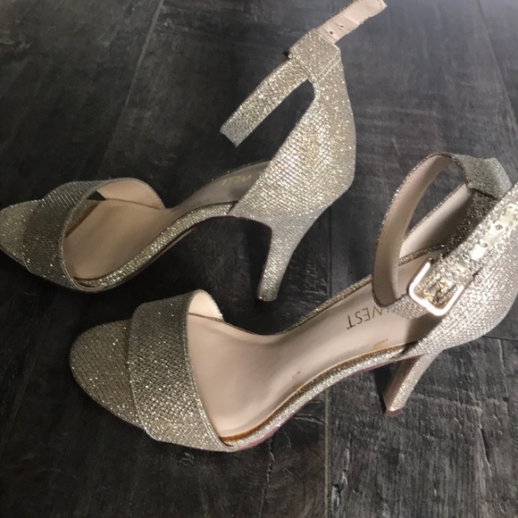 Mana Open Toe Gold Glitter Sandals nine west mana heels