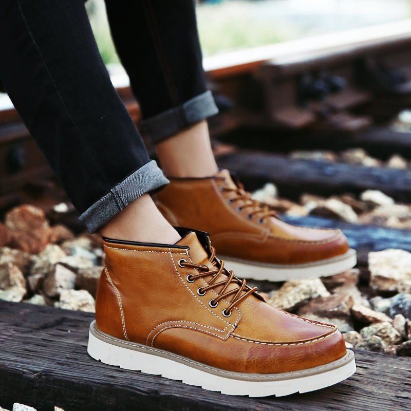 Ankle Boots Lace Up Leather Shoes Boots mens high top dress sneakers