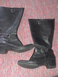 CLARKS WIDE CALF LEATHER BOOT LOW black wide calf boots size 10