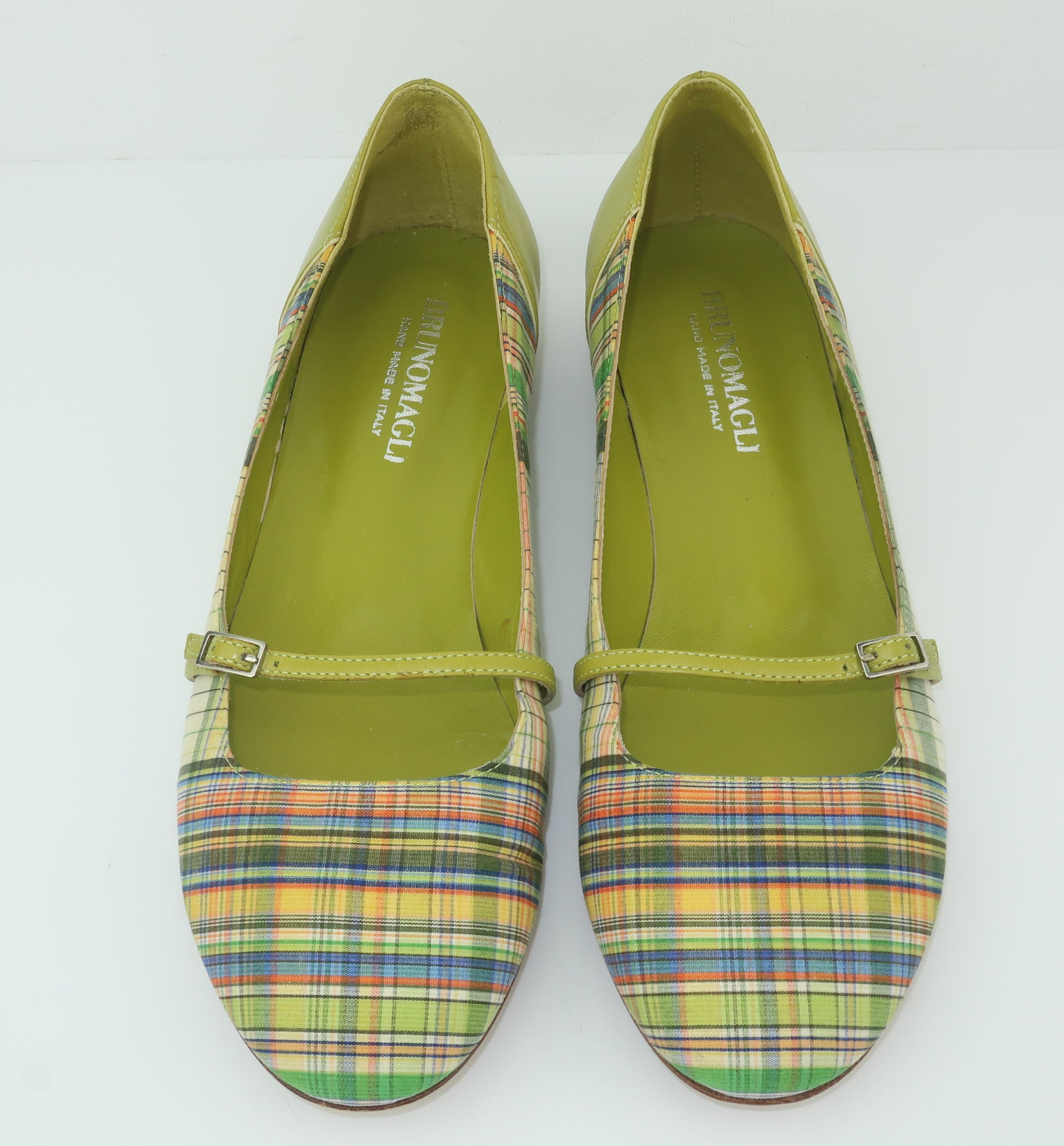 Green Leather Mary Jane Shoes Sz 6 plaid mary janes