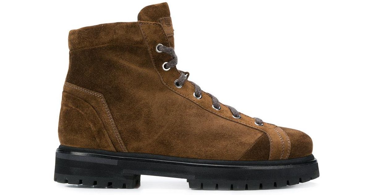 Santoni Leather Hiking Boots in Brown santoni hiking boots