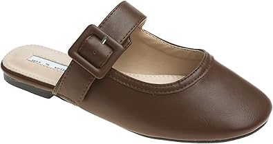 Backless Mary Jane Flat Mule Darkbrown backless mary jane shoes
