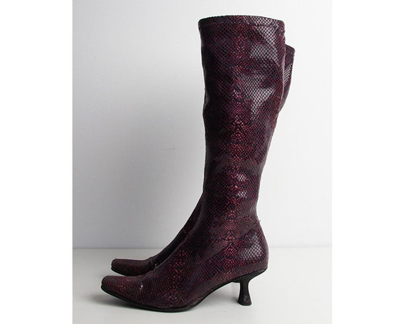 Snake Pattern High-heeled Long Boots burgundy long boots