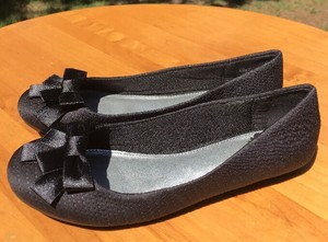 Black Satin Ballet Bow Flats Size 6.5M fergalicious black flats