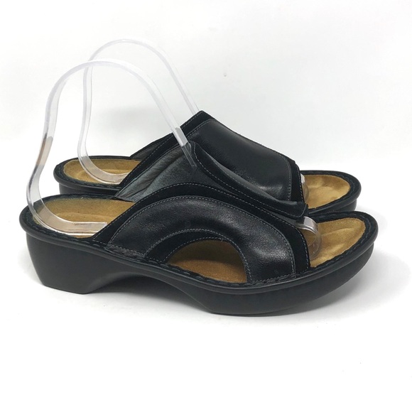 Black Leather Slip On Sandals Size 8.5 naot 39