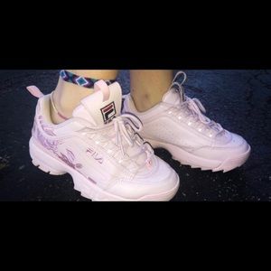 Fila Shoes | Baby Pink Rose Embroidered pink rose fila shoes