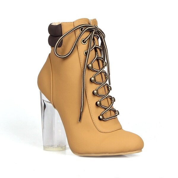 Shop Fahrenheit Rosy-17 Clear Heel orange booties with clear heel
