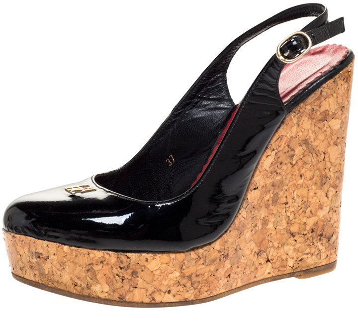 Black Patent Cork Wedge Sandal - ShopStyle vaneli kadeen wedge