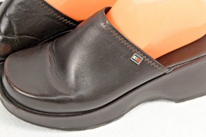 Brown Leather Clogs Slides Mules Shoes tommy hilfiger clogs