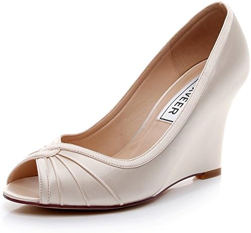 LUXVEER Satin Wedding Shoes Bridal champagne wedges for wedding