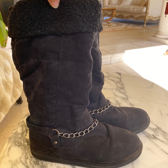 Sherpa Fur Lined Boots W Chain guess fur lined boots