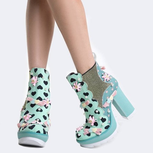 Teddy Bear Pink And Mint Platform Heels irregular choice teddy bear shoes