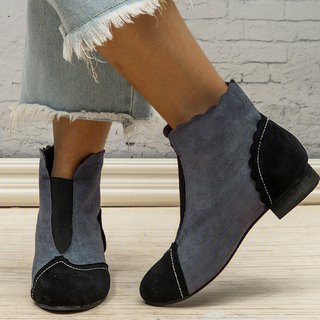 Color Block Round Toe Low Heel Vintage ankle boots plus size
